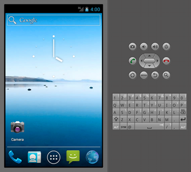 The Android emulator mimics all of the hardware and software features of a typical mobile device, except that it cannot place actual phone calls. It provides a variety of navigation and control keys, which you can "press" using your mouse or keyboard to generate events for your application. It also provides a screen in which your application is displayed, together with any other active Android applications.